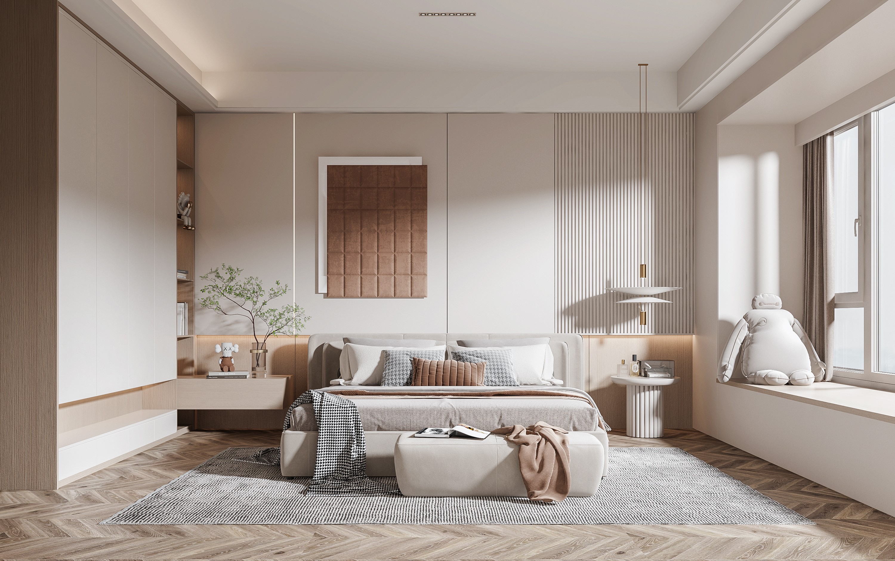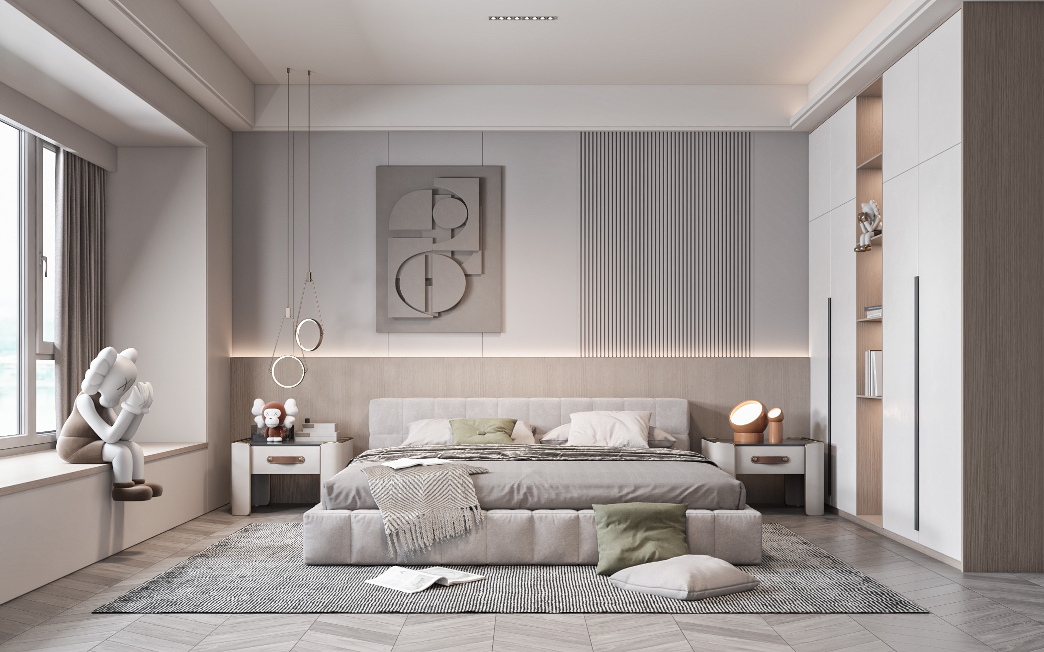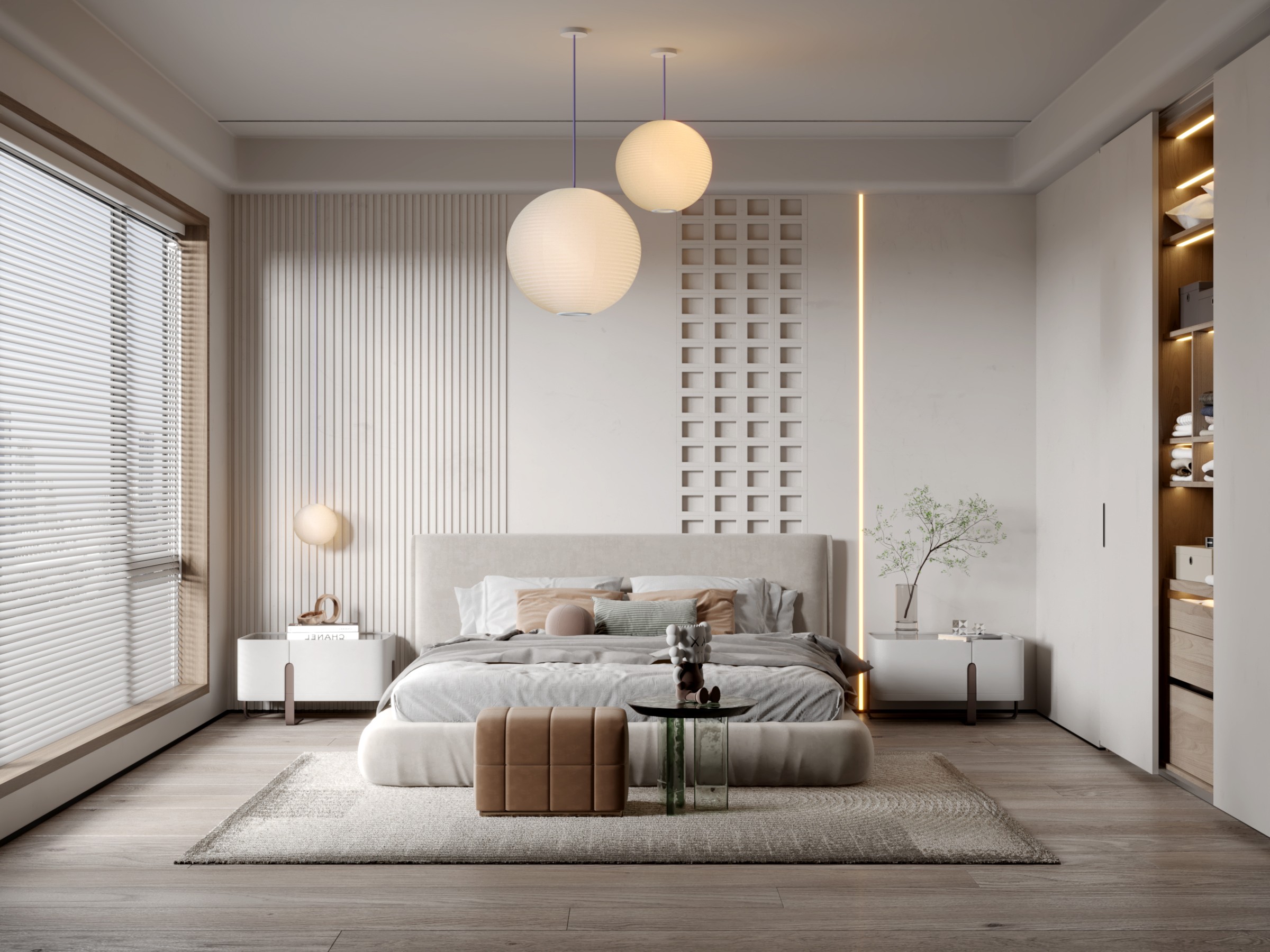 Ngoài ra, ánh sáng cũng đóng vai trò rất quan trọng. Việc kết hợp ánh sáng tự nhiên từ cửa sổ lớn cùng đèn thả, đèn hắt trần, đèn đầu giường hay đèn trang trí giúp phòng ngủ có chiều sâu hơn, đồng thời tạo nên bầu không khí ấm cúng vào buổi tối. Đây cũng là bí quyết giúp không gian vừa có tính thẩm mỹ cao, vừa đáp ứng tốt nhu cầu sinh hoạt hằng ngày.