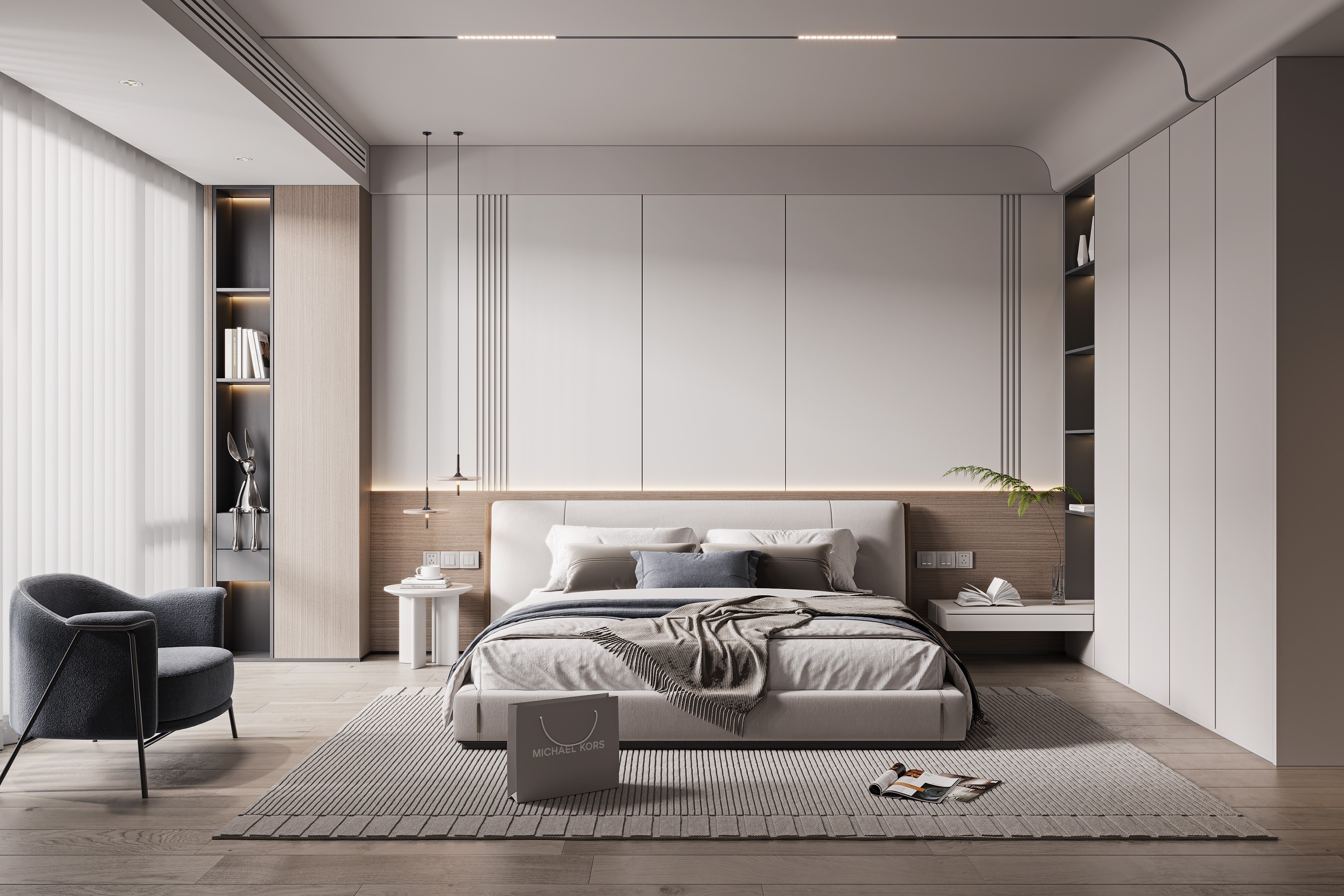 Bên cạnh đó, những mảng tường trang trí đầu giường, hệ tủ âm tường, đèn thả nghệ thuật hay chi tiết bo cong mềm mại đã tạo nên điểm nhấn sang trọng mà không gây rối mắt. Đây là xu hướng được nhiều gia chủ yêu thích bởi vừa đẹp hiện đại, vừa phù hợp với nhiều loại hình nhà ở như căn hộ, nhà phố hay biệt thự.