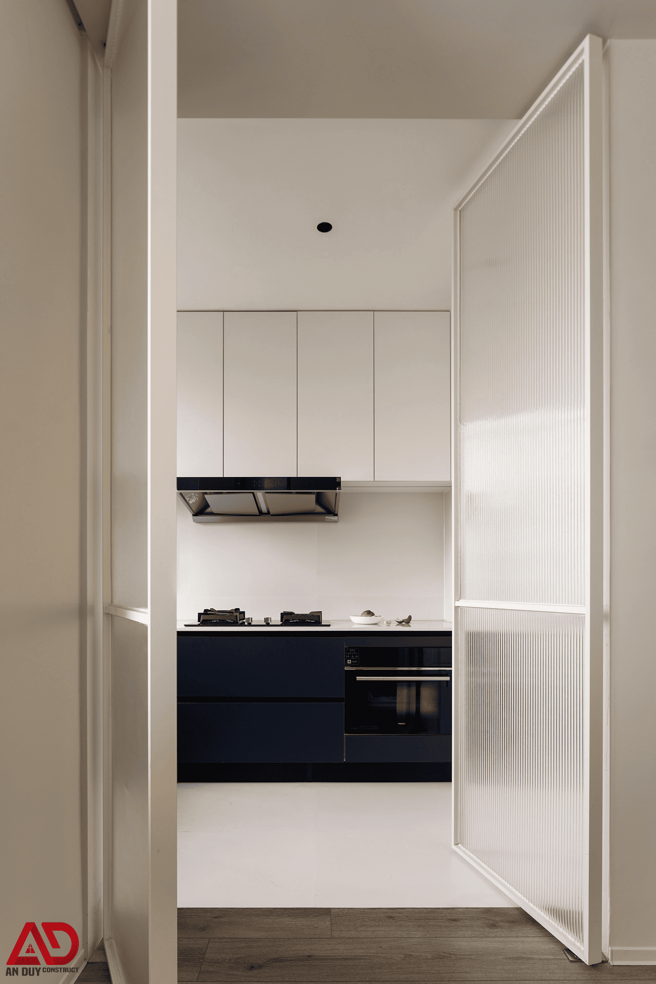Đối với căn hộ có diện tích nhỏ, việc liên thông phòng khách và bếp là giải pháp phổ biến giúp mở rộng không gian. Trong phòng ngủ, nên ưu tiên hệ tủ cao sát trần để tăng diện tích lưu trữ mà không chiếm quá nhiều mặt sàn.