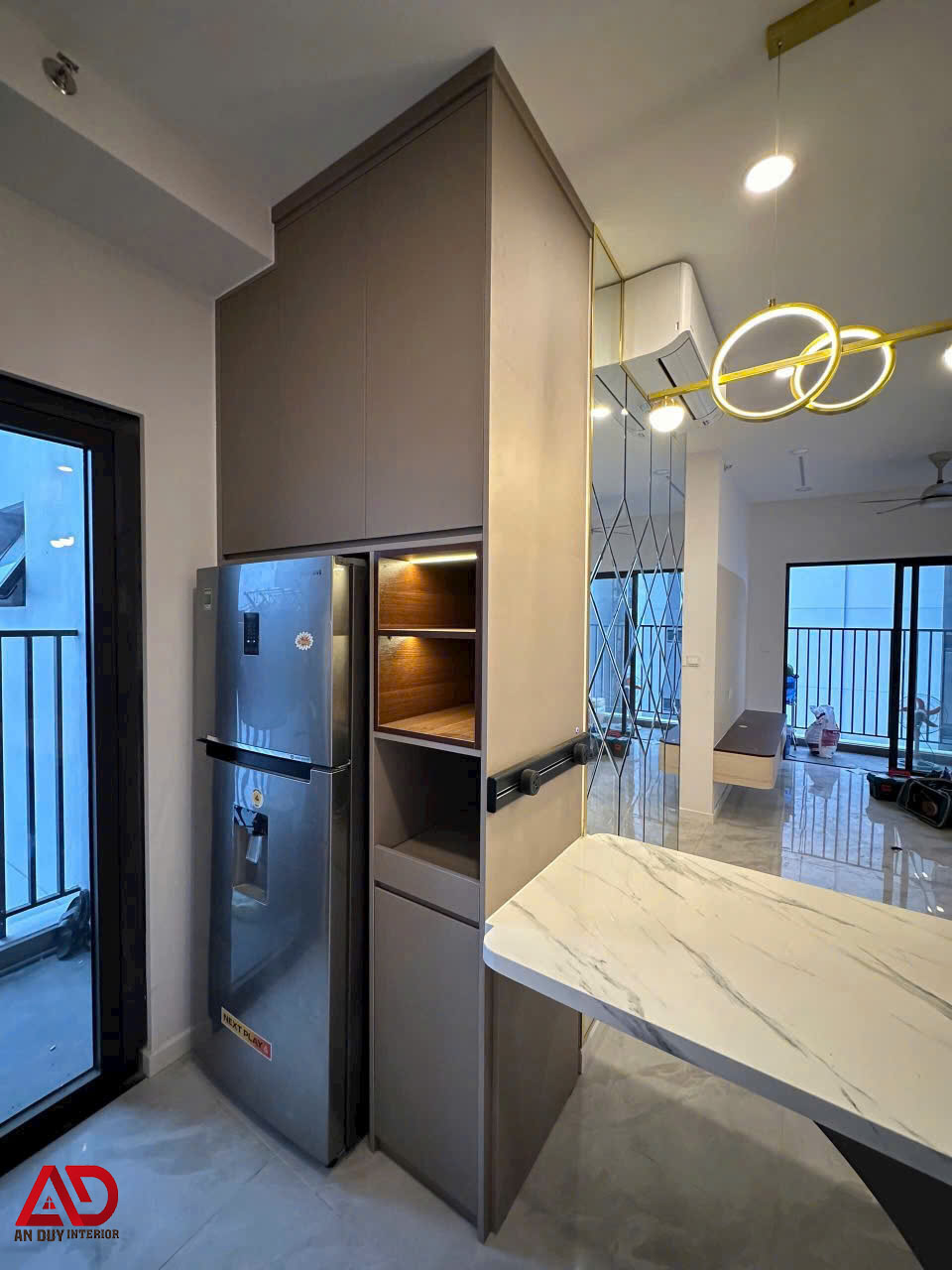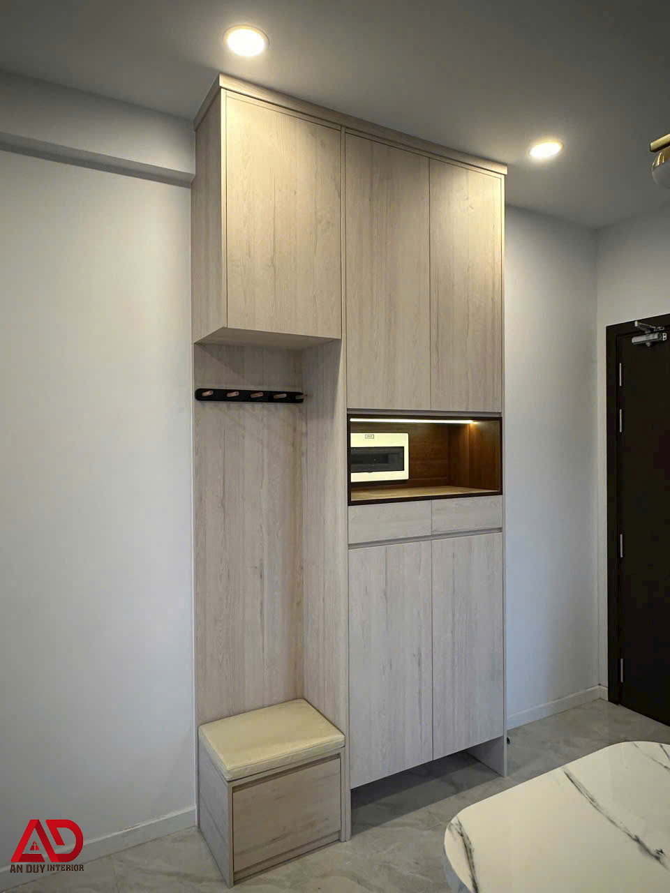 An Duy Interior vừa hoàn thiện một công trình nội thất nhà ở với ngôn ngữ thiết kế hiện đại, sang trọng và đề cao tính ứng dụng thực tế. Tổng thể không gian sử dụng bảng màu trung tính kết hợp giữa vân gỗ nâu ấm, trắng thanh lịch, đen nhấn mạnh cá tính và đá vân sang trọng, tạo nên cảm giác hài hòa, cao cấp nhưng vẫn gần gũi trong sinh hoạt hằng ngày.