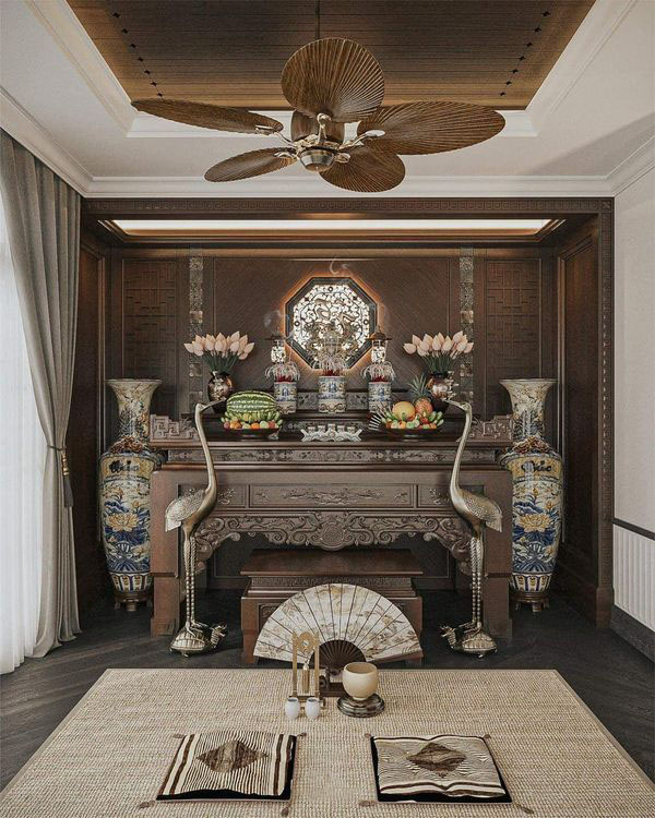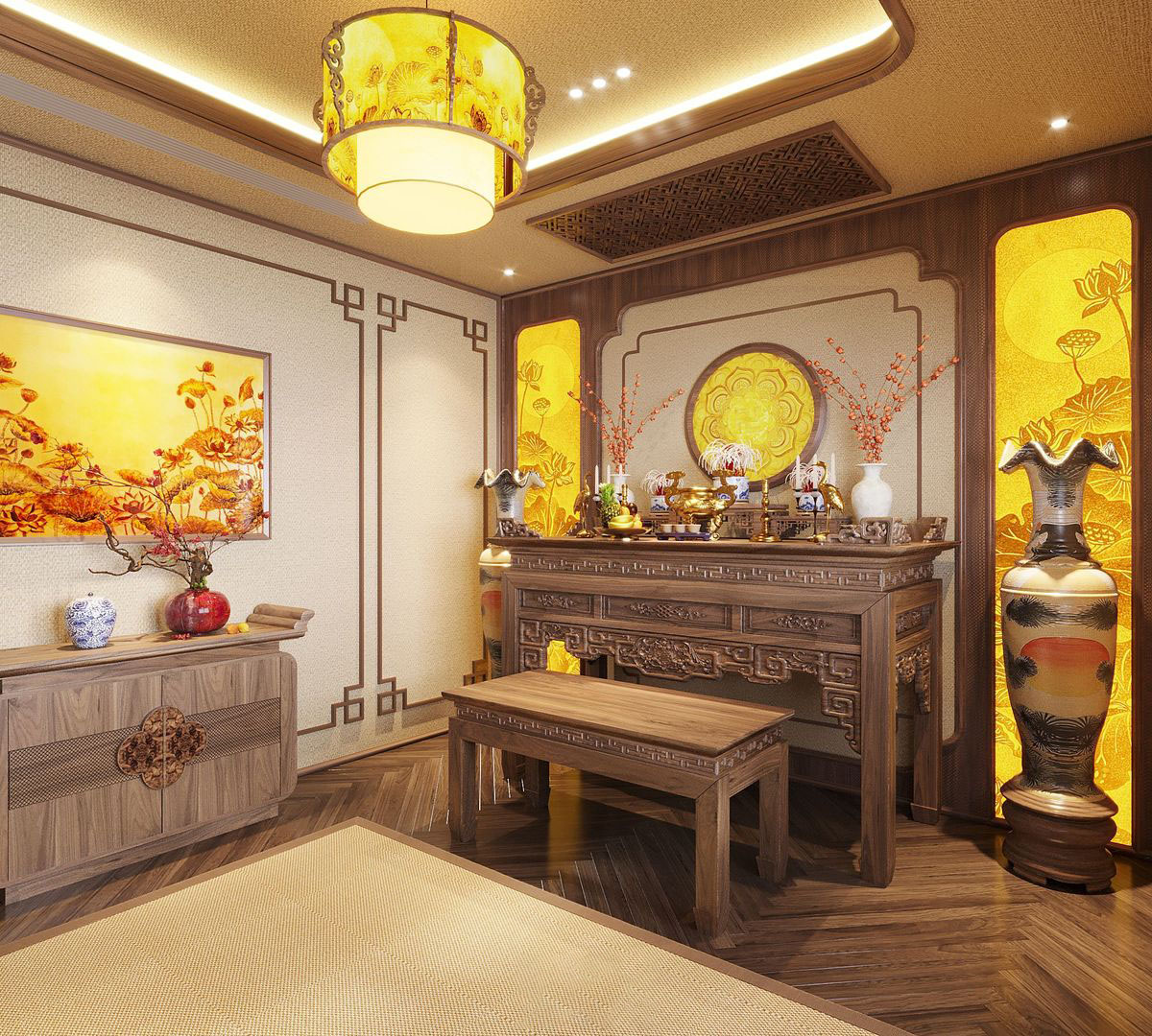 1. Không gian phòng thờ đẹp với bố cục trang nghiêm